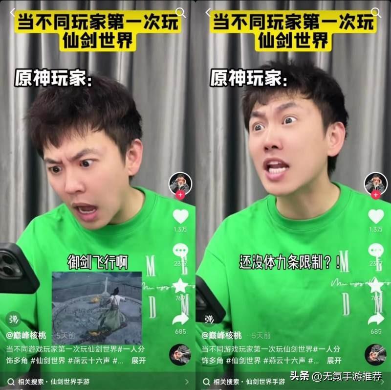 我還在抖音上看到一位“整活小能手”關於仙劍的段子,點贊很會就過萬了,段子虛構了仙劍世界玩家和原神、陰陽師、鳴潮、幻獸帕魯等遊戲玩家的隔空探討,其中那個原神玩家看到御劍飛行那個沒體力限制的羨慕,真的是讓這個秈原雙廚感觸滿滿,如果我原的體力條也能改成沒有限制該多好啊。三測期間,這種其他平臺上玩家自制的內容可謂多了去了。