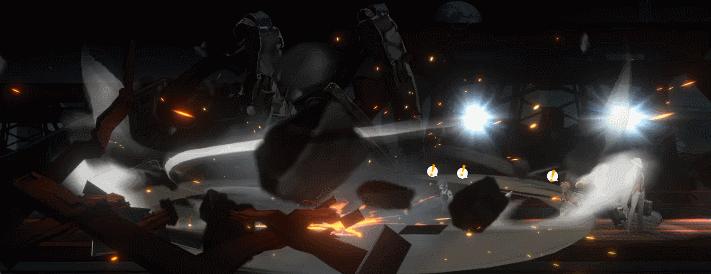遊戲的美術選型雖然是2D,但由於有完整的場景和人物動作,其實呈現出來的氣質更接近於香草社的《十三機兵防衛圈》。遊戲在場景美術上下了不少功夫。這種功夫,不是指那種簡單直接的拼貼圖質量,而是更多在光影、色彩、構圖上去營造氛圍感,以及某種美感。