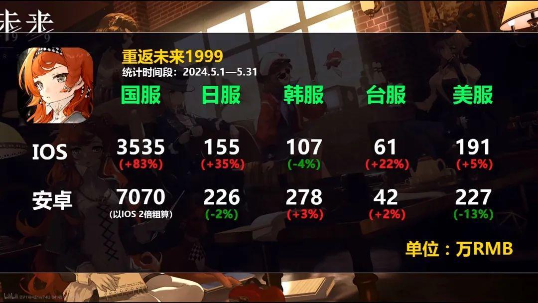 據B站up主@國產二次元手遊觀察 推算,憑藉週年慶版本,它的5月流水超過了1億。
