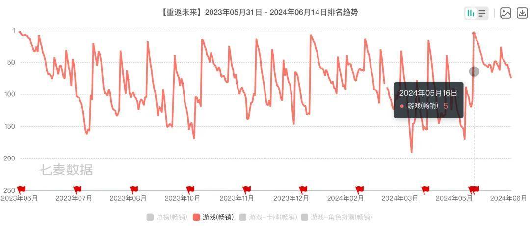 這樣的成績談不上特別亮眼,但在二遊萬馬齊喑,遇到一波節奏就幾乎無法翻身的當下,依舊算是不小的奇蹟。