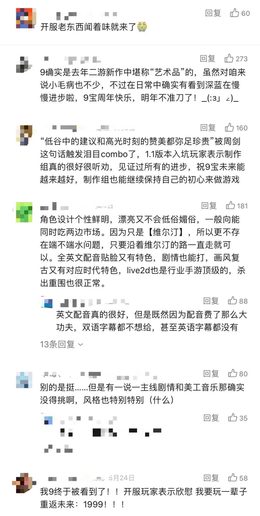 這樣的運營風格,和內容創作互相配合,進一步穩住了核心用戶。在一些《1999》的分享文章下,常常會有自稱開服玩家的評論,感慨遊戲的進步和改變。