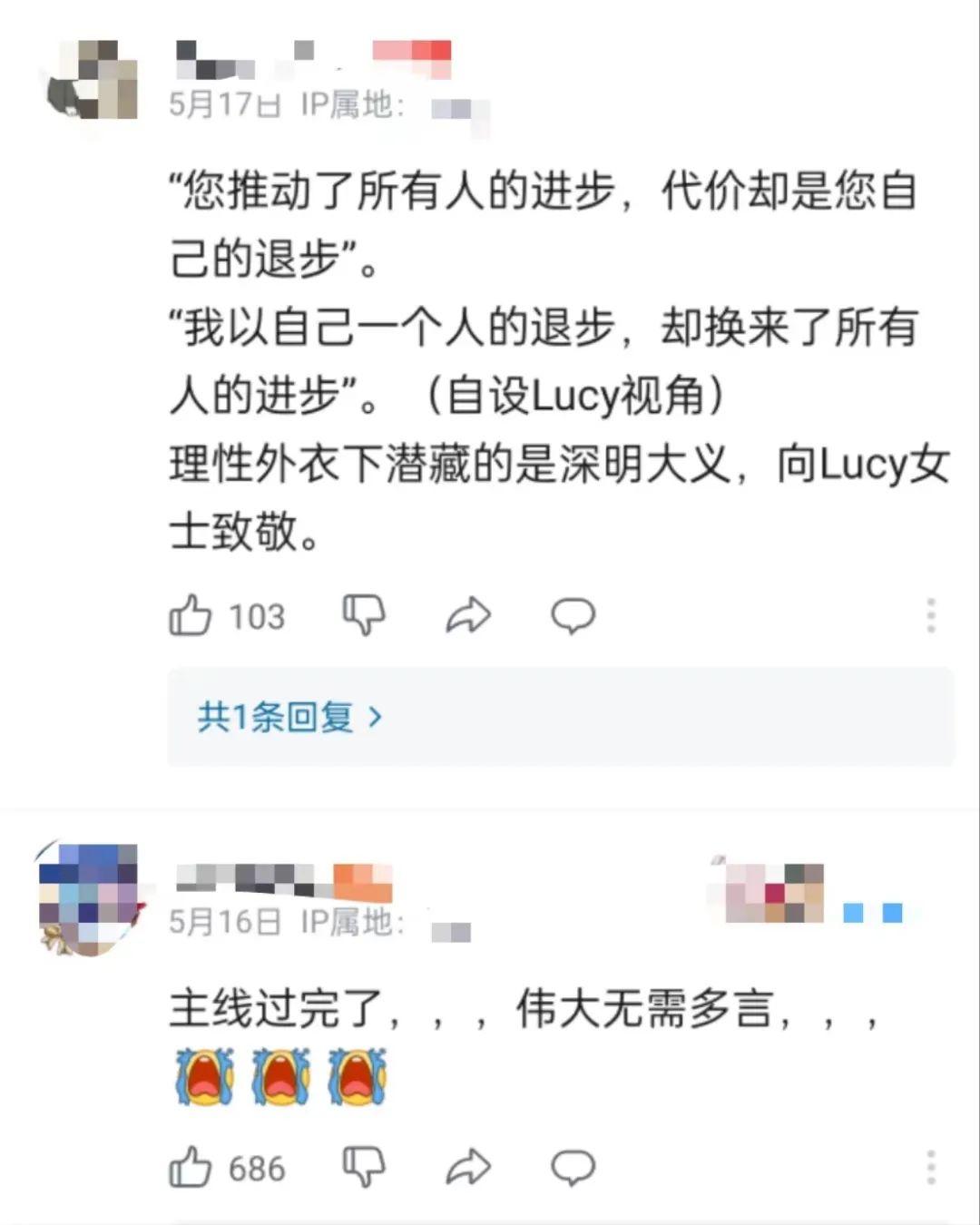 在玩家的統計中,露西是目前流水最高的限定角色,甚至超越了開服角色梅蘭妮。這裏面當然有強度膨脹的因素,但從社區評論可以看出,她的魅力也是巨大的付費誘因。