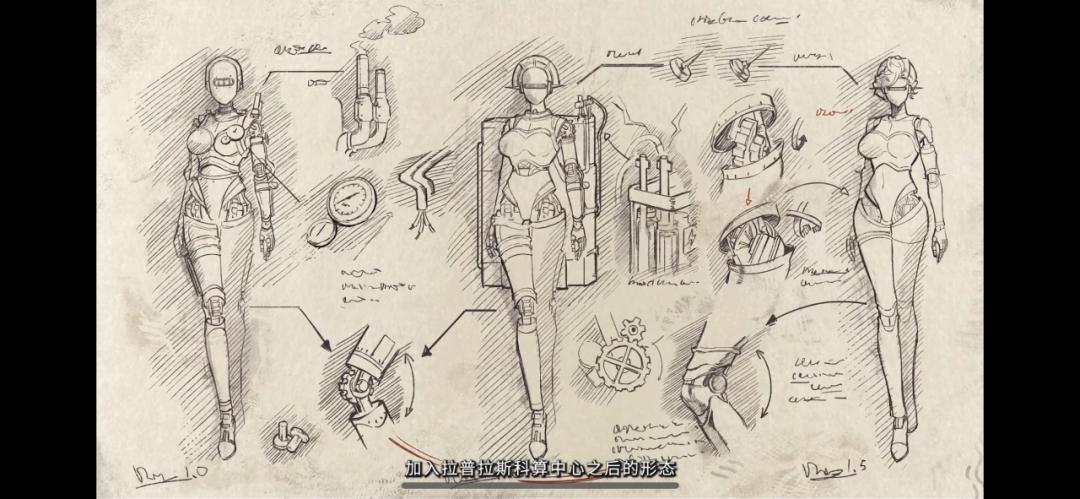 先介紹一下露西的設定。她是一個從活塞中喚醒了意識的生命體,在第一次工業革命中誕生,隨着科技發展,自身的能源和外形也隨之變化,而在1.9版本劇情的開始,她正在擔任一個由人類主導的機構——拉普拉斯科算中心的領導者。