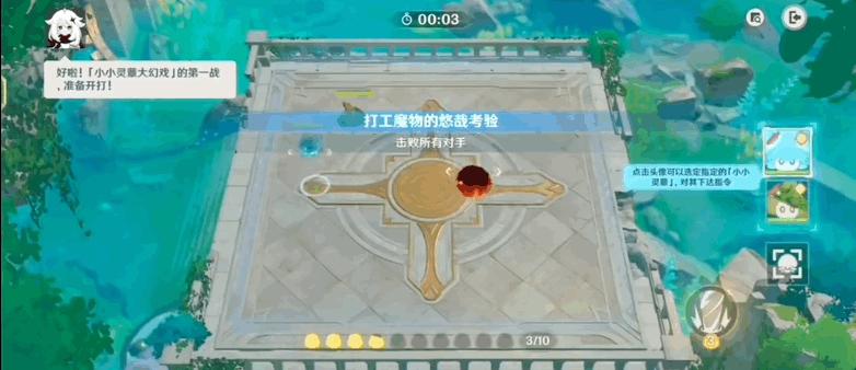 比如《原神》就已經做過包含精靈對戰的活動,叫做「小小靈蕈大幻戲」。活動中玩家不僅可以和這些「蕈獸」建立情感,也可以使用它們來戰鬥,具體玩法類似於即時戰略。