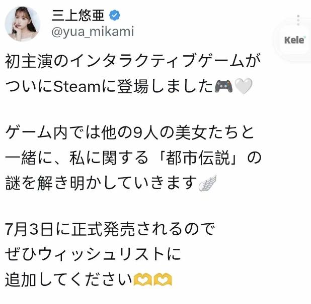 而在昨天,遊戲也終於正式首曝,各大主演都在個人賬號發佈了官宣視頻,表示遊戲將於7月3日正式發售。就連三上悠亞也在X上發佈了該消息。