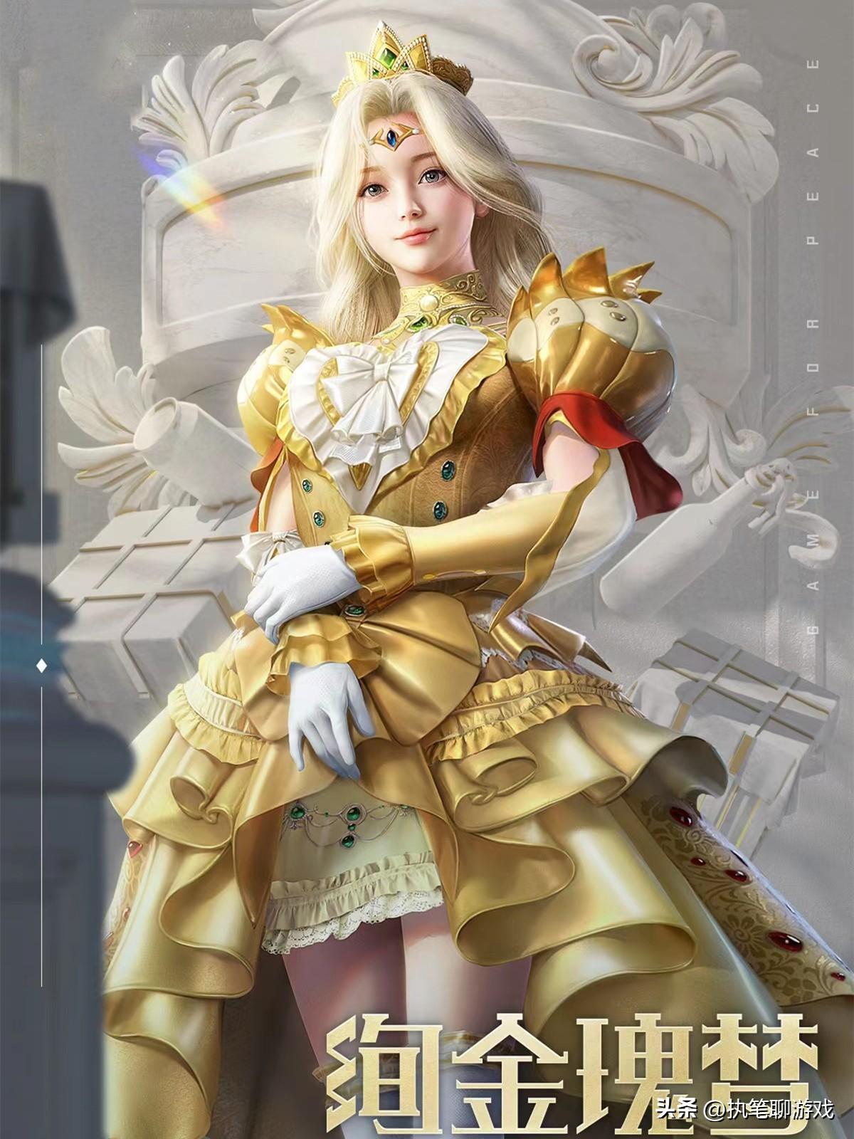 這個系列算得上是比較早期的中轉盤了,最大的亮點無疑是C位主套裝“絢金瑰夢”,當時的《和平精英》玩家比較偏愛這種連衣裙,就像“甜蜜誓約”一樣,升級槍Mini14極爲普通,其他皮膚同樣都是壓箱底的類型。
