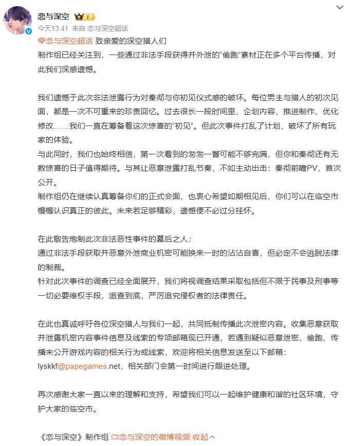 《戀與深空》因“偷跑”爆料主動發佈新男主信息