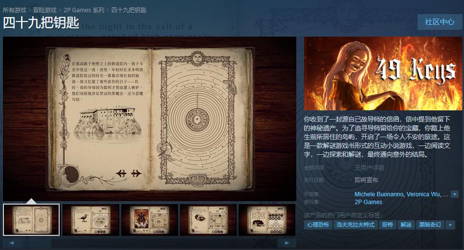 今天爲大家推薦一款解謎書類型的互動小說遊戲《49把鑰匙》。