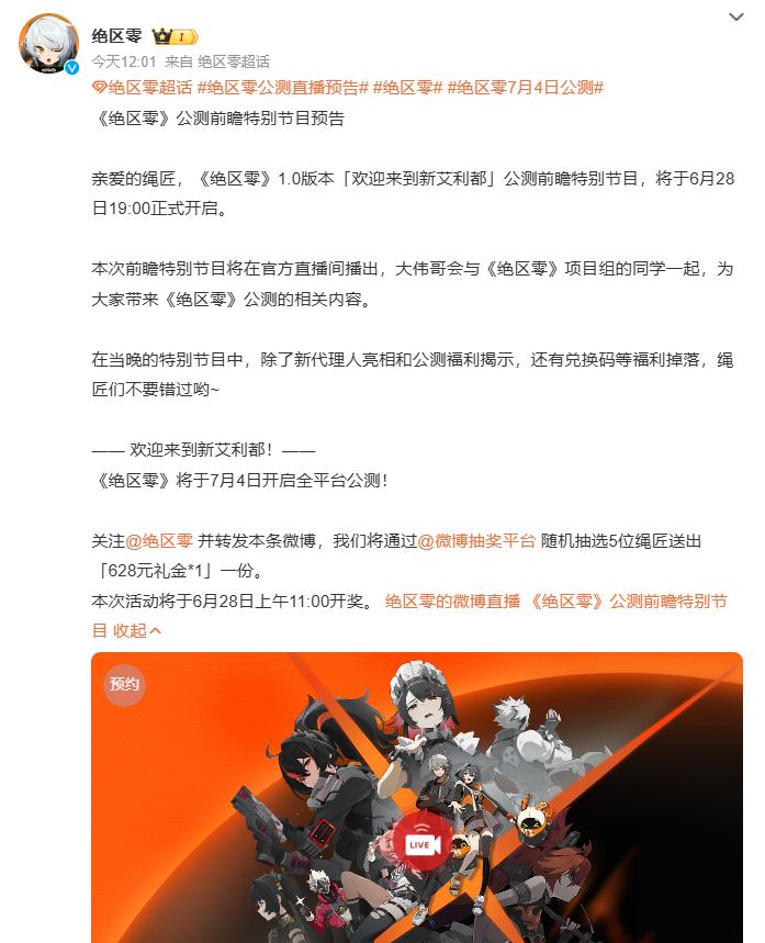 屆時會爲大家帶來《絕區零》公測的相關內容,除了新代理人亮相和公測福利揭示,還有兌換碼等福利掉落。