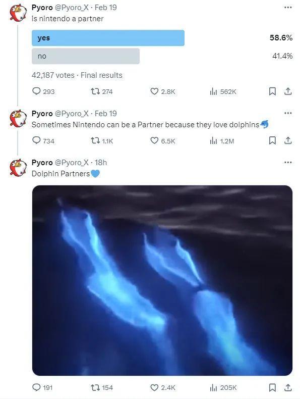 但一反常態的是,6月18日,任天堂舉辦了最新的直面會,那幾天,Pyoro並沒有積極發佈消息。他似乎也不知道即將公佈的第一方遊戲是什麼,甚至在幾天後鎖定了X的訪問權限,目前他賬號裏的內容都無法查看。