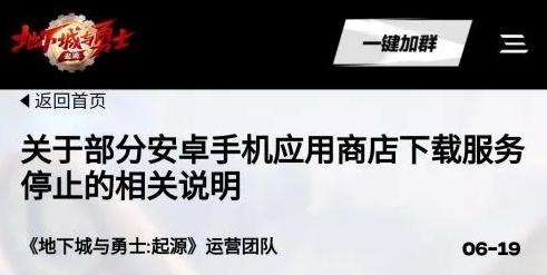 DNF手遊從部分安卓平臺下架,不再更新包體。19日,《地下城與勇士:起源》發佈公告,稱因合約到期,6月20日起,DNF手遊將不再上架部分安卓平臺的應用商店。這些安卓平臺,包括“硬核聯盟”中的華爲、OPPO、vivo三家和小米,以上幾個渠道的DNF手遊包體將停止更新。騰訊單方面下架遊戲,標誌着主流遊戲大廠和安卓渠道進一步分道揚鑣,如果五五分成的局面不改變,未來會有更多明星產品主動繞過安卓渠道上線。