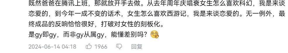 更誇張的是,《光夜》這波熱度,沒有停留在乙遊圈以及遊戲本身,而是引來不少圈外人“對騰訊改觀”的感慨,把對一款遊戲的好評上升到了集團層面。