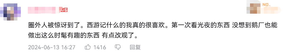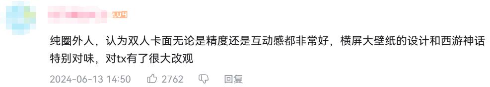 就評論區來看,在很多人的刻板印象中,可能內容向遊戲並非是騰訊擅長的品類,但是《光夜》這次週年慶的卡面精度和互動感,卻做得相當好;而且在內容向遊戲越卷越套路、越陷入工業流水線模板的情況下,《光夜》卻用新奇的故事切入視角、現代演繹手法,做出了讓人眼前一亮、耳目一新的內容體驗;與此同時,還把西遊神話做得“特別對味”……