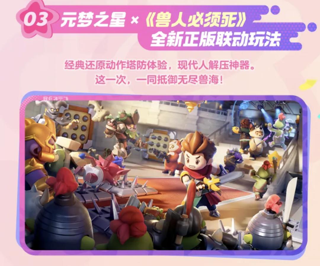 從《王者榮耀》到《獸人必須死》,各種各樣的正版聯動玩法,分別以定製化的形式融入遊戲。可以看到,這次半週年慶,《元夢之星》的正版授權全家桶裏,又多了不少重量級選手。