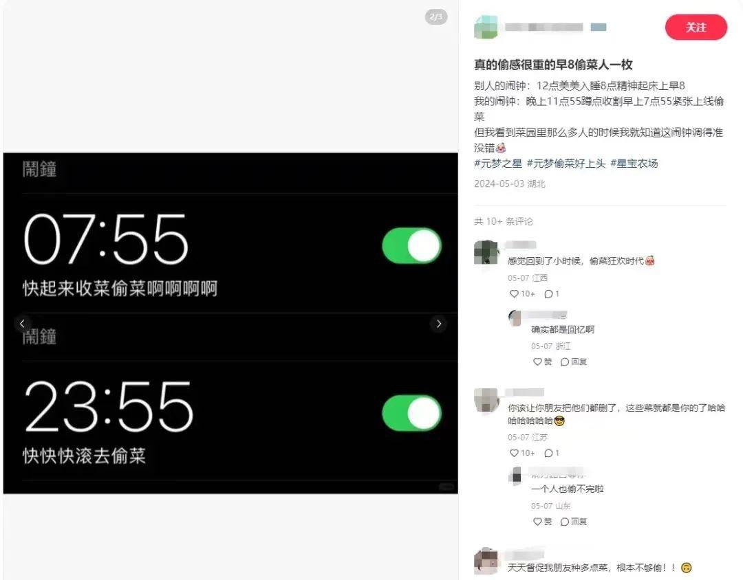 比如此前「星寶農場」的種菜偷菜社交玩法,就讓《元夢之星》成爲了年輕人的第一款偷菜遊戲,還培養了一批「元夢早8人」;