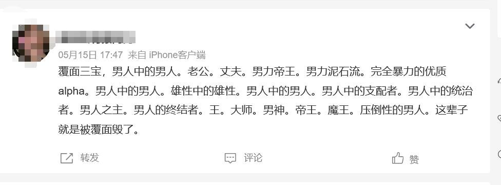 另一邊,“覆面系”這個源自二次元一般向語境中的詞彙,現在卻似乎已經成爲了“乙女”專屬的用語,也是因爲夢女們對其的熱衷實在是太過於引人矚目,導致聲量完全蓋過了其它愛好者。