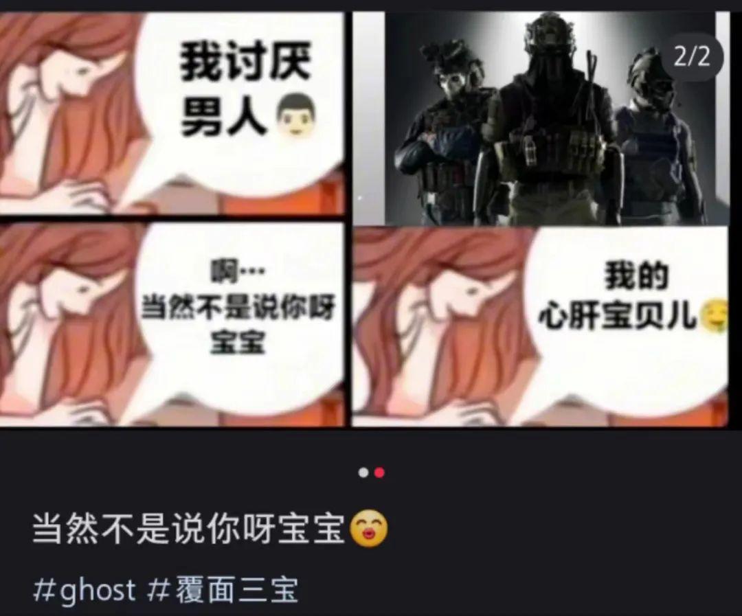 雖然說不上“塌房”,但熊志強火了之後的這些紛紛擾擾,特別是堪稱掉皮的“露臉照”事件,更讓夢女們意識到了“覆面三寶”的好——COD系列都火了17年了,動視都沒捨得讓Ghost露出下半張臉(玩家解包發現的不算),這纔是最讓覆面系愛好者安心的好消息。