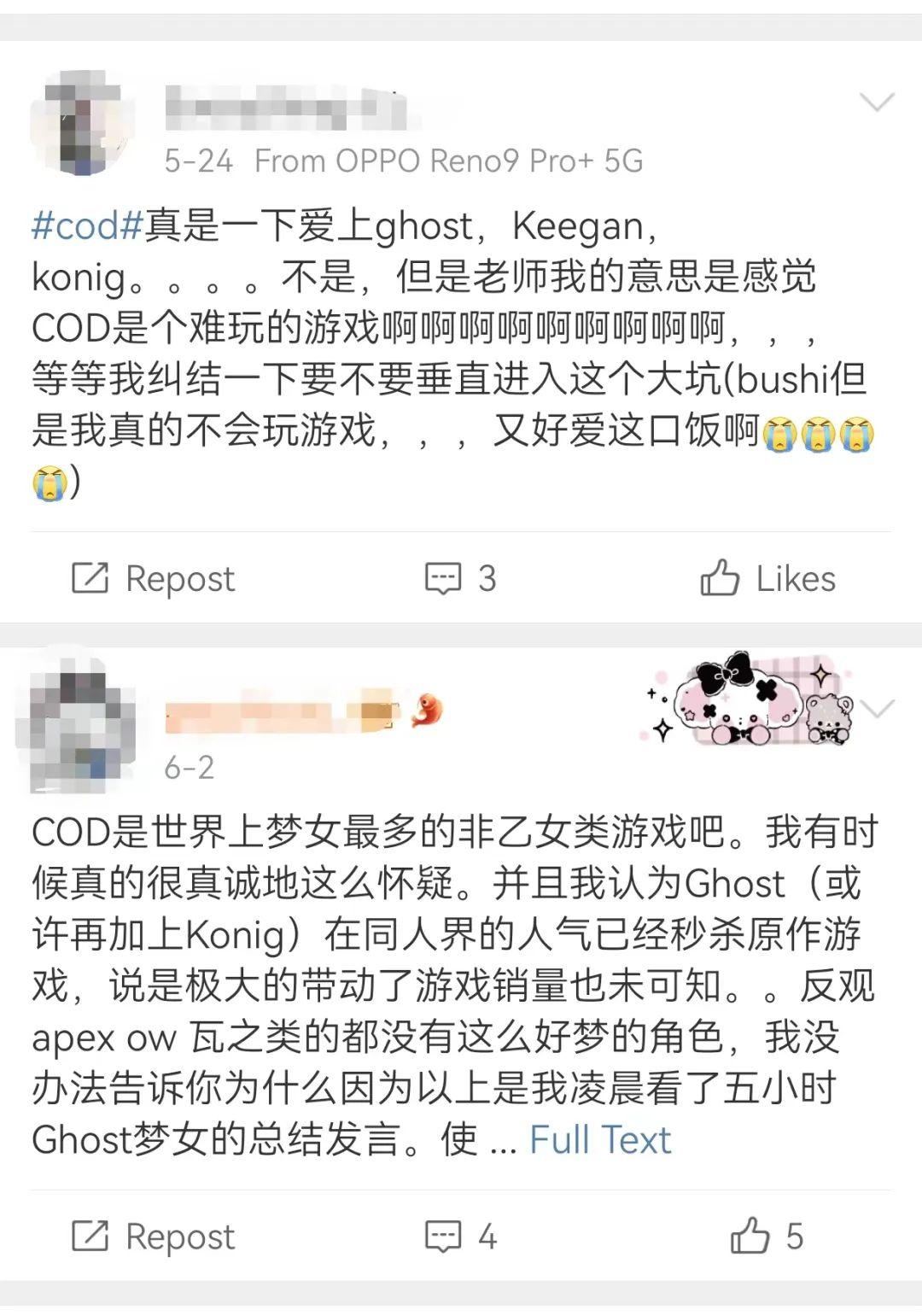 這時候我們纔不得不承認,或許COD真的成爲了當下甚至有史以來國內夢女最多的一款非乙女向遊戲。
