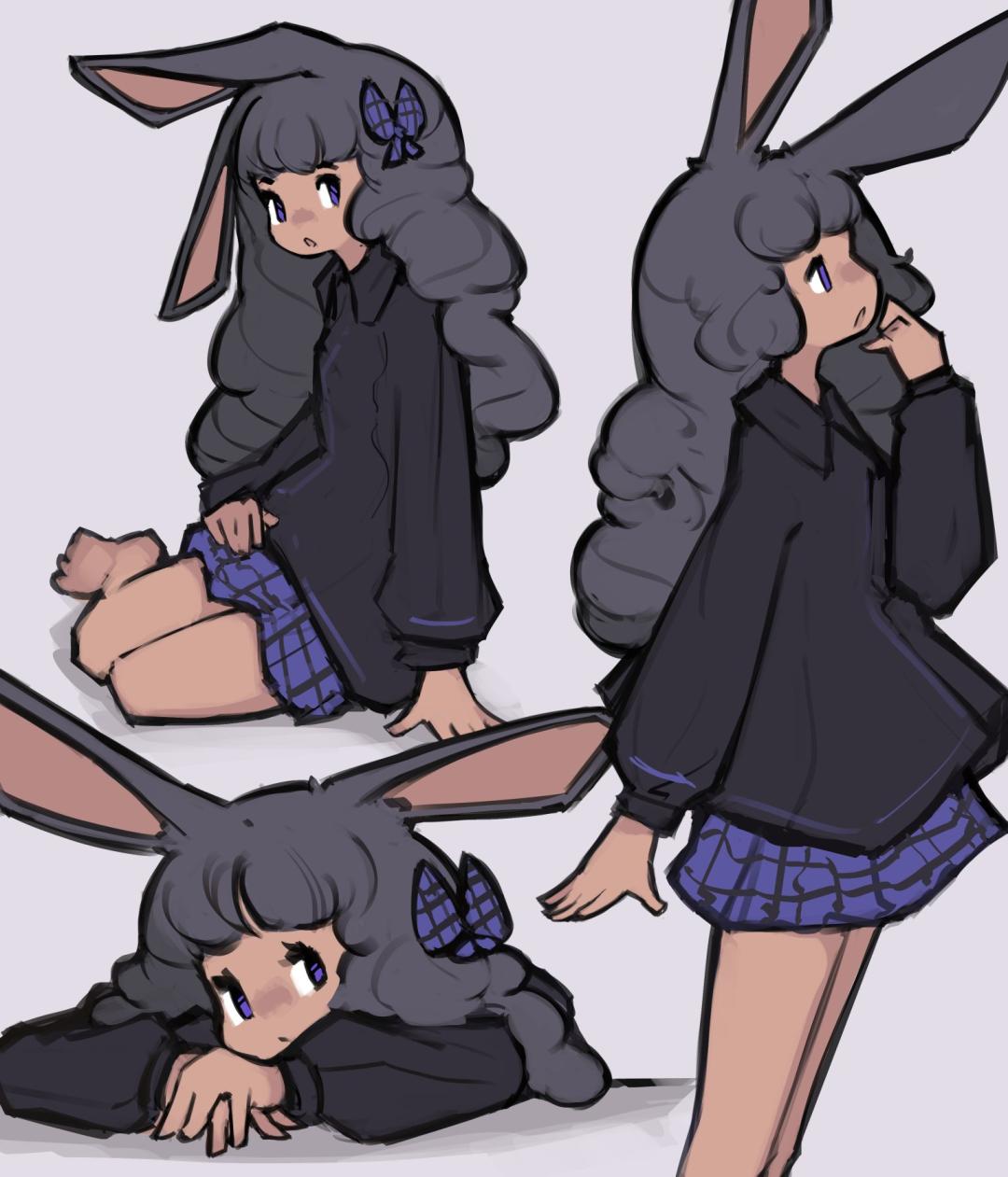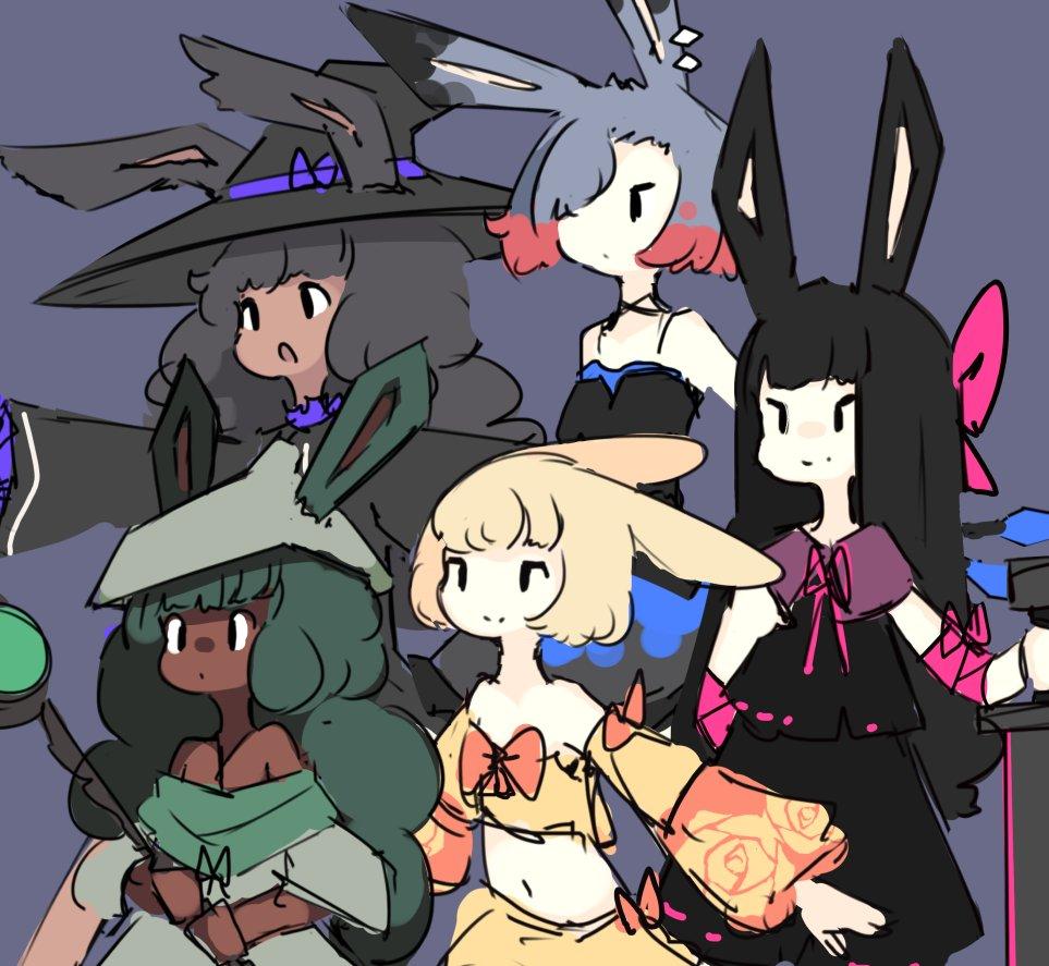 比如黑髮重劍兔拿着大劍,一看就是前排輸出,黑色基調透露出硬派的風格,粉蝴蝶結則代表了她的一絲俏皮性格;灰色短髮兔遮住半邊臉的造型,搭配黑底藍邊的裙身,體現出幹練、冷酷的性格;巫師兔的黑灰捲髮、巫師帽、月亮魔杖、幾乎純黑的外套,也能勾勒出一個沉穩、內斂的魔法師形象。