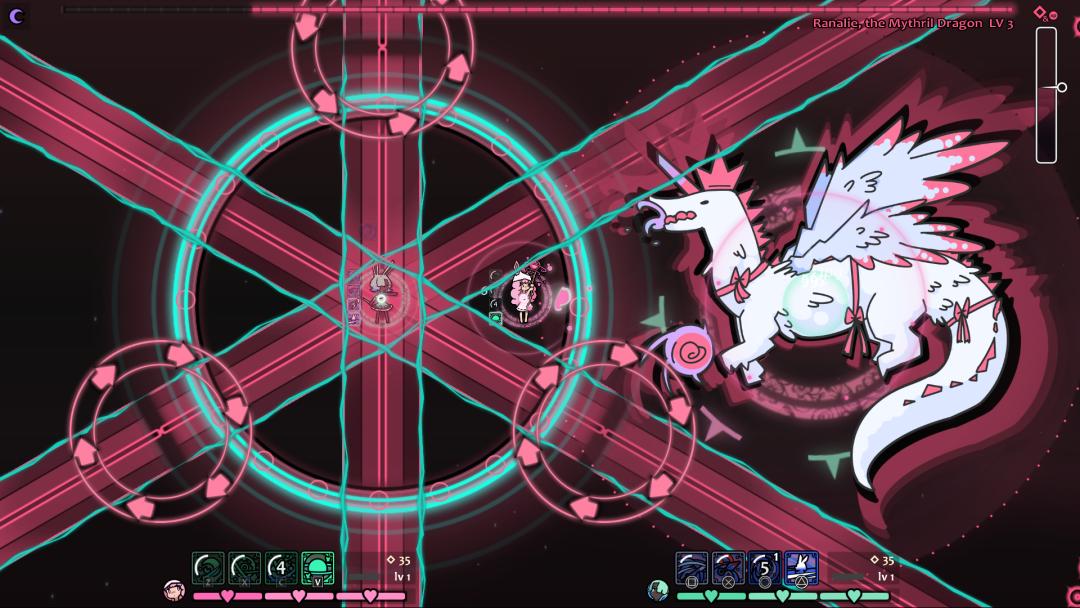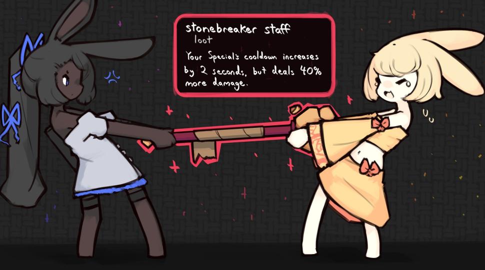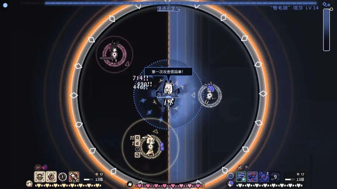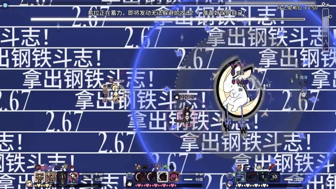 總體上,《兔子與鋼鐵》的玩法,就像一個極簡風的《FF14》連續BOSS RUSH副本。單人闖關熟練應對機制也好,多人配合互相玩鬧闖關也罷,很容易讓人聯想到在MMO裏下本的樂趣,所以這款遊戲也被玩家簡稱兔兔14。