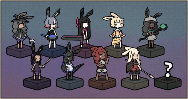 這款遊戲的美術素材稱不上多麼精細和消耗成本,但它對自身要表達的要素有着明確的規劃:圍繞兔耳少女,一邊構建童話式的世界觀烘托逐月的要素,另一邊簡化人物細節,只保留職業性格和兔耳等關鍵特徵。