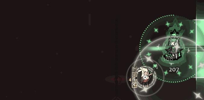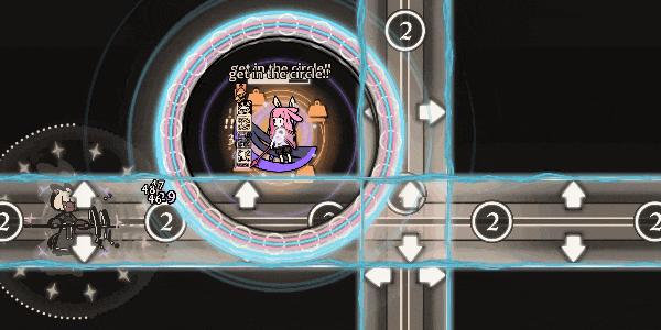 遊戲戰鬥場景裏用到的要素非常非常簡單,只有不同的色塊與幾何圖形,甚至絕大多數情況下,背景只有一片黑底。遊戲的核心玩法也很簡單,就是連續的、類似MMO副本里的BOSS戰:即判斷BOSS的攻擊機制,然後避開攻擊的同時,熟練運用自己的技能,考慮好CD,然後儘可能輸出。
