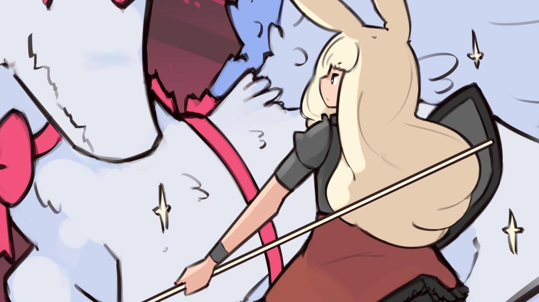人物動作的設計,也延續了這種突出重點的極簡風格。舞娘兔兔的轉圈圈和擺poss,弓箭兔兔的蓄力飈射,騎士兔兔長槍撼地給人的安全感。能發現,這些簡單幾幀就結束的動作,幾乎沒有多餘的要素,緊緊圍繞着兔兔的萌動、不同職業的特徵、性格各異的行爲來呈現。