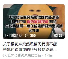 事情還得從她在交換穀子的過程中遇到了一位櫻花妹說起,在某天凌晨一點,收完穀子的UP被櫻花妹私信問她,可不可以幫她代購崩鐵的谷。