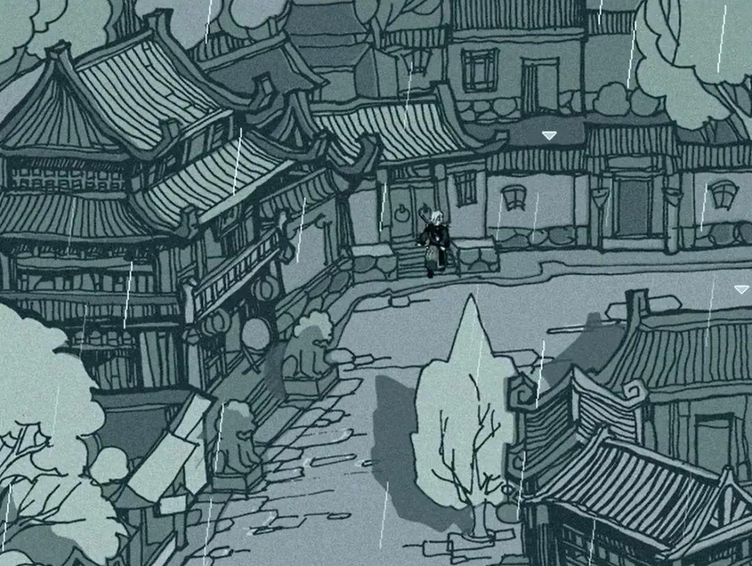 而第三作《雨血:蜃樓》,以及隨後的三部《影之刃》手遊,則都是前傳。所以實際上,《雨血》的故事一直沒完結,它本該終於《雨血3:荒城》,但這部遊戲一直沒被製作。