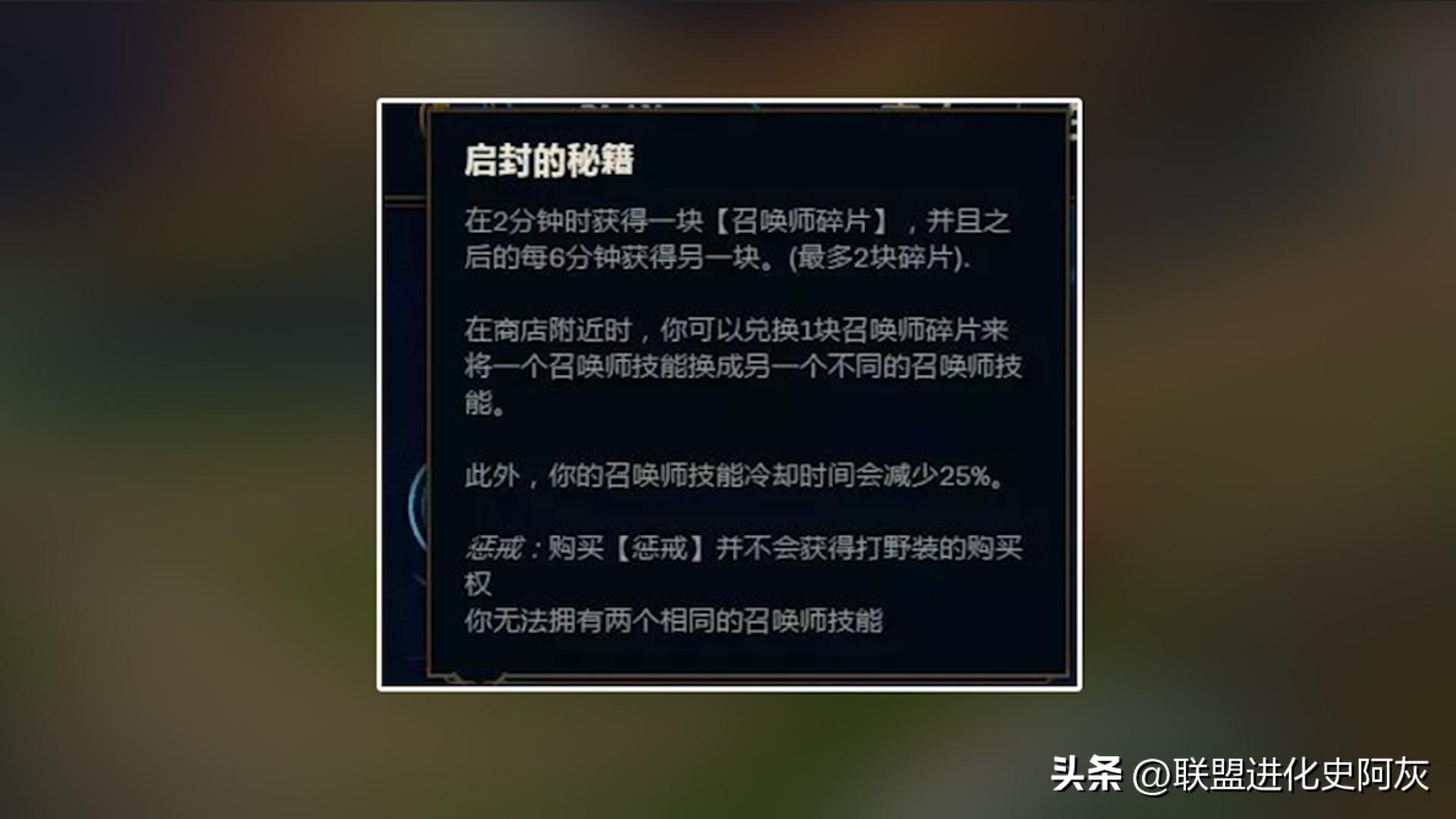 接着是主菜,S8一上來就是王炸,初代啓封祕籍還記得吧?換的召喚師技能永久有效,還能減25%CD,前期帶懲戒發育,後期換TP打團,點名表揚上單鍊金,真特麼把我噁心吐了,甚至還有一些輔助,帶懲戒去搶野怪的,僅半年時間,啓封祕籍就被改得面目全非。