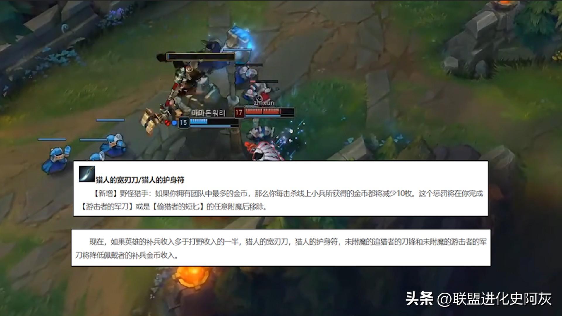 還沒等設計師喘口氣,第二波大的又來了,8.11版本暴擊裝備削弱,ADC變成了可有可無的存在,中野地位最高的一集,一開始大夥都是玩野核,什麼死歌努努,劍聖寶石,男槍布隆,雙懲戒摁保野爹發育,黑暗收割疊起來就是亂殺,後來逐漸演變成養中路大C,懲戒男刀、懲戒劍魔,一人我喫三路,團戰我一打五,十人五懲就是這個時期的產物,逼得設計師給低級打野刀加上了補兵懲罰。