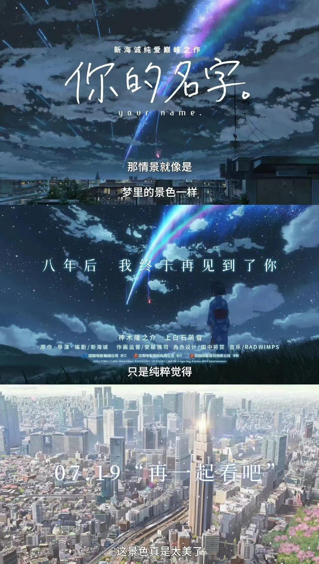 新海誠的《你的名字》要重映了,定檔7月19日在內地上映,8年前,這部電影曾在內地創下過5.77億票房的出色成績。