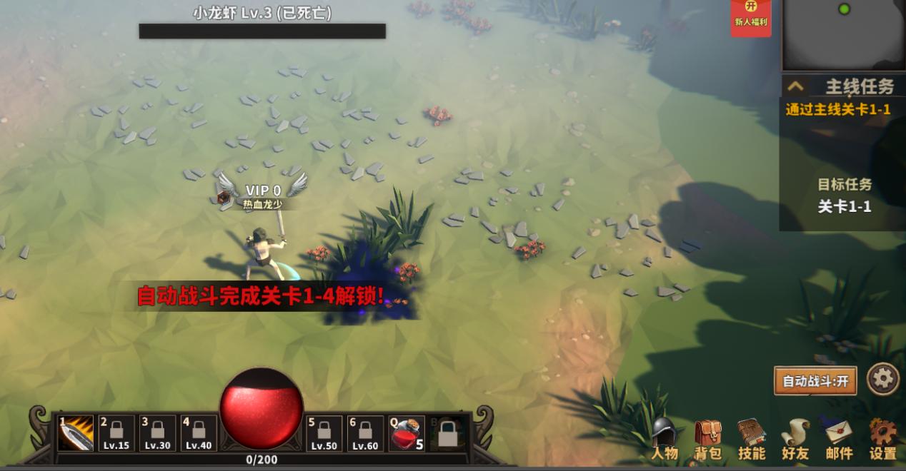操作就是簡單鼠標點擊移動,按12345施放技能,自動尋路交任務,如果你打完關卡1-4還能額外解鎖自動戰鬥功能。