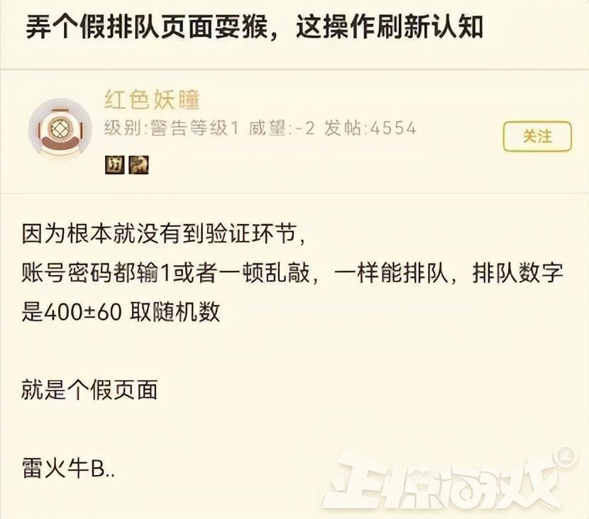 但比較抽象的是,有玩家發現那個新服排隊的頁面是假的,賬號密碼一頓亂按,一樣能排隊,就有點耍猴了……