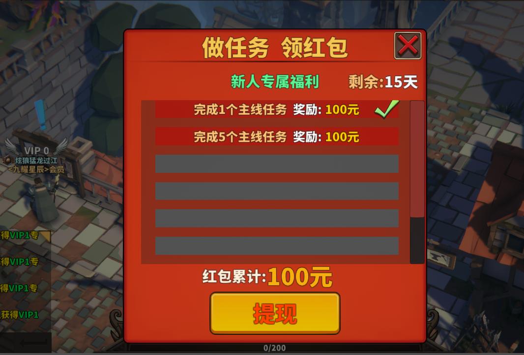 當他回想起遊戲可以換錢時,點開新手紅包,卻發現它像拼夕夕體現一樣給的越來越少,幾乎不可能完成。