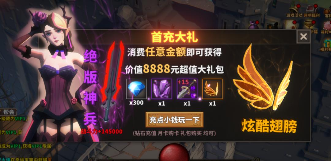 於是老王充了錢,領到首充禮包裏送的小翅膀。隨着等級提升也解鎖了越來越多的功能,發現可以花錢的地方實在是太多,賽季禮包、每日禮包、特惠禮包。。。