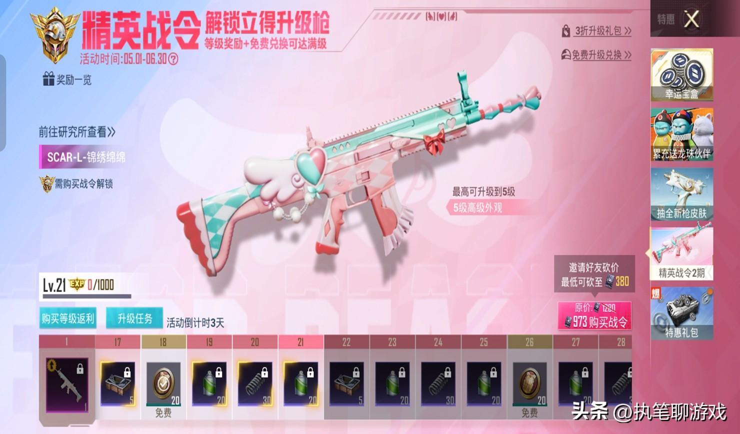 嚴格意義上來講,《和平精英》裏的精英戰令屬於低氪玩家的福利系列,就如同手冊一樣,不過獎勵卻是以5級槍爲主,雖然沒有過於炫酷的外觀和淘汰盒子,但是卻可以搭配賽季手冊特效來使用,由於升級所需要的材料可以通過精英戰令來獲得,而且邀請好友互K最低是380點券直接拿到,所以出場之後就備受關注。