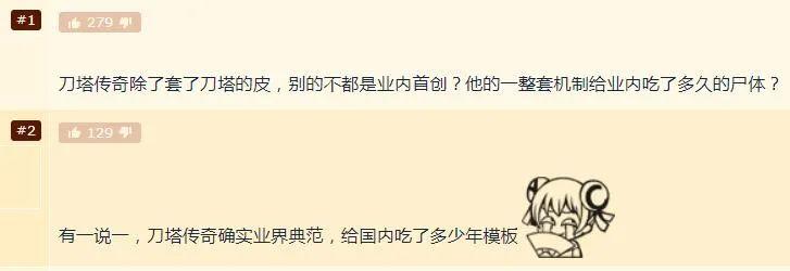 但沒想到,最高讚的兩個回覆都在說,當年《小冰冰傳奇》雖然有IP糾紛,但稱不上山寨,甚至遊戲的玩法、機制都是業內首創,反倒被其他公司的卡牌遊戲“抄”了不知道多少年。