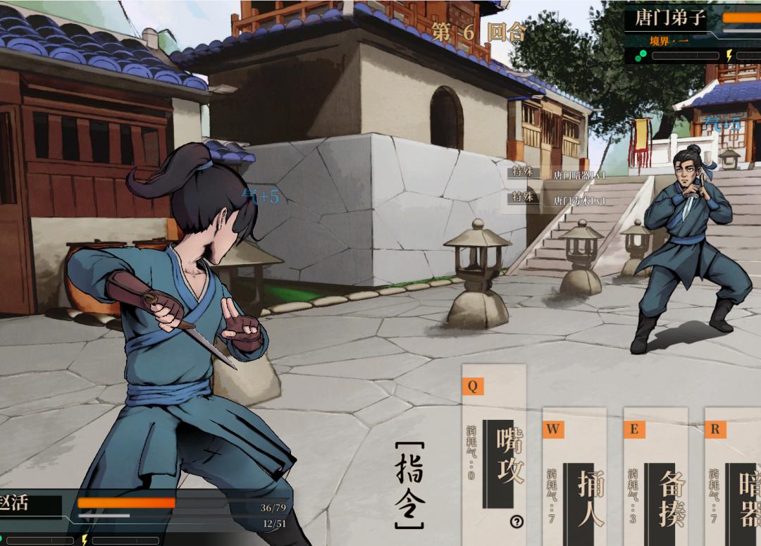 在基本的戰鬥玩法上,《活俠傳》的設定類似一個升級版的石頭剪刀布。你可以根據當前的氣力值,選擇嘴攻、捅人、備揍、暗器、絕招幾個不同策略的選項。如果有修煉特殊武功,這些選項也會有不同的效果。不過最讓人在意的一點,可能是這個玩法本身有極強的隨機性,再加上攻擊有幾率miss,早期也時常令人抓狂。