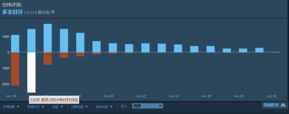 然而這樣一款遊戲,在Steam上發售後一度被打出「多半差評」,陷入捱罵風波。過了半個月,好評率才慢慢回升到「多半好評」。在覈心玩家與大衆之間,它的評價顯得極度割裂。