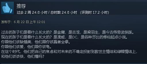 從大部分評論的情況來看,這是因爲早期一些勢頭兇猛的節奏逐漸消退,一些冷靜下來的玩家沉下了心,再加上難度調整,玩進去的玩家基本都get到了《活俠傳》的難得之處。我想,這也在證明,好的武俠作品永遠都有市場。