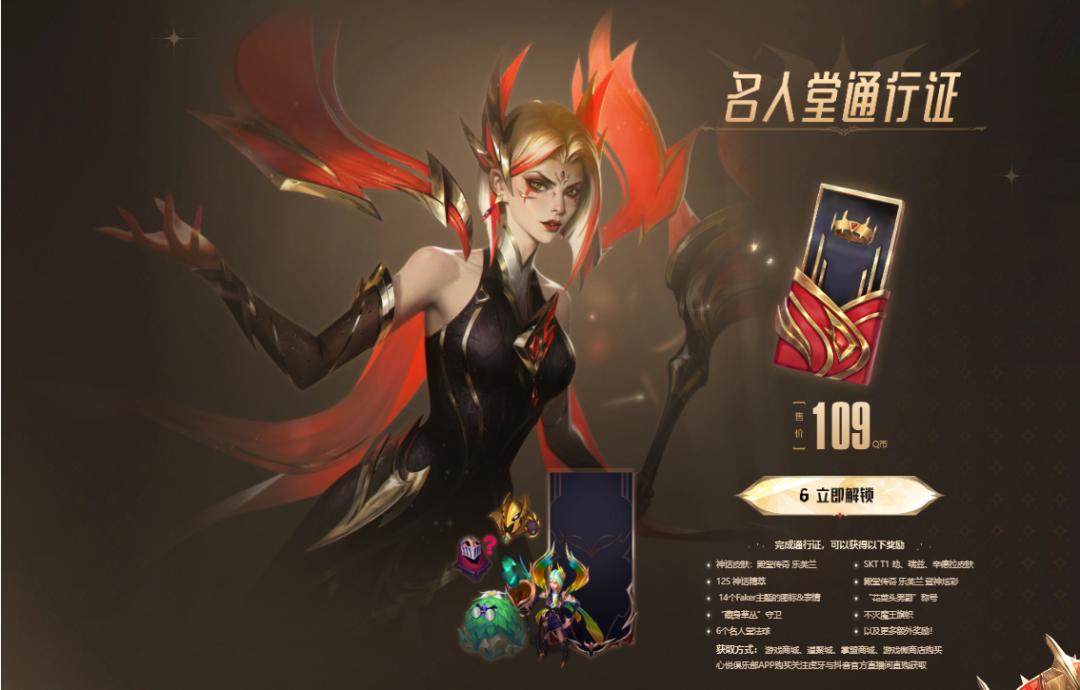 除此之外,還有“名人堂通行證”活動。玩家將其解鎖後,不僅可以解鎖Faker名人堂殿堂傳奇 樂芙蘭皮膚和Faker 劫、瑞茲、辛德拉三款冠軍皮膚,還可以獲得125神話精粹(可兌換一款至臻皮膚)、殿堂傳奇 樂芙蘭 登神臻彩以及一系列Faker定製表情、圖標等獎勵。