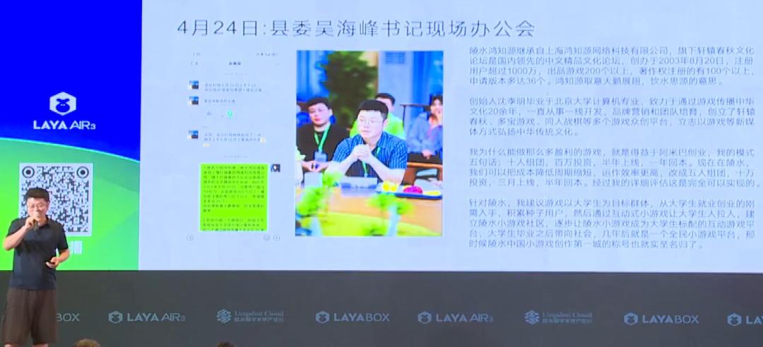 而在前幾天的陵水全球小遊戲論壇暨LayaAir八週年慶典上,畢業於北京大學計算機專業,創立過戰棋春秋、多寶遊戲、同人戰棋等多個遊戲衆創平臺的沈李明,則作爲首批入駐陵水小遊戲產業園區的代表,做了一些分享。