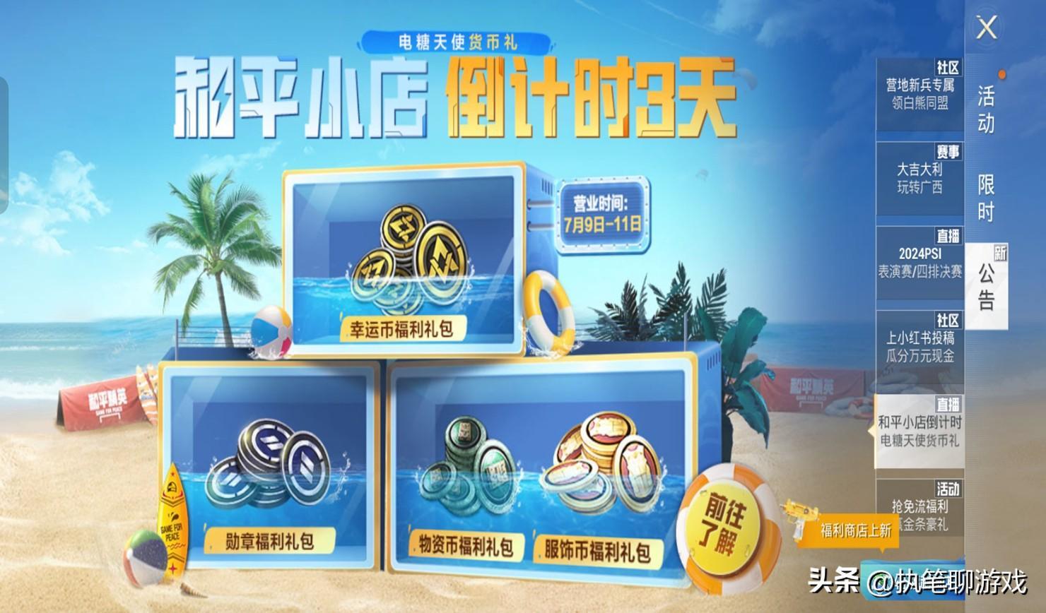 除了大轉盤載具、皮膚的新消息外,和平小店即將開啓的消息已經正式官宣,不過這一次只能算是“禮包專場”,被光子命名爲電糖天使貨幣禮,7.9到11開啓期間僅有榮耀勳章、物資幣、服飾幣、幸運幣等遊戲幣禮包。