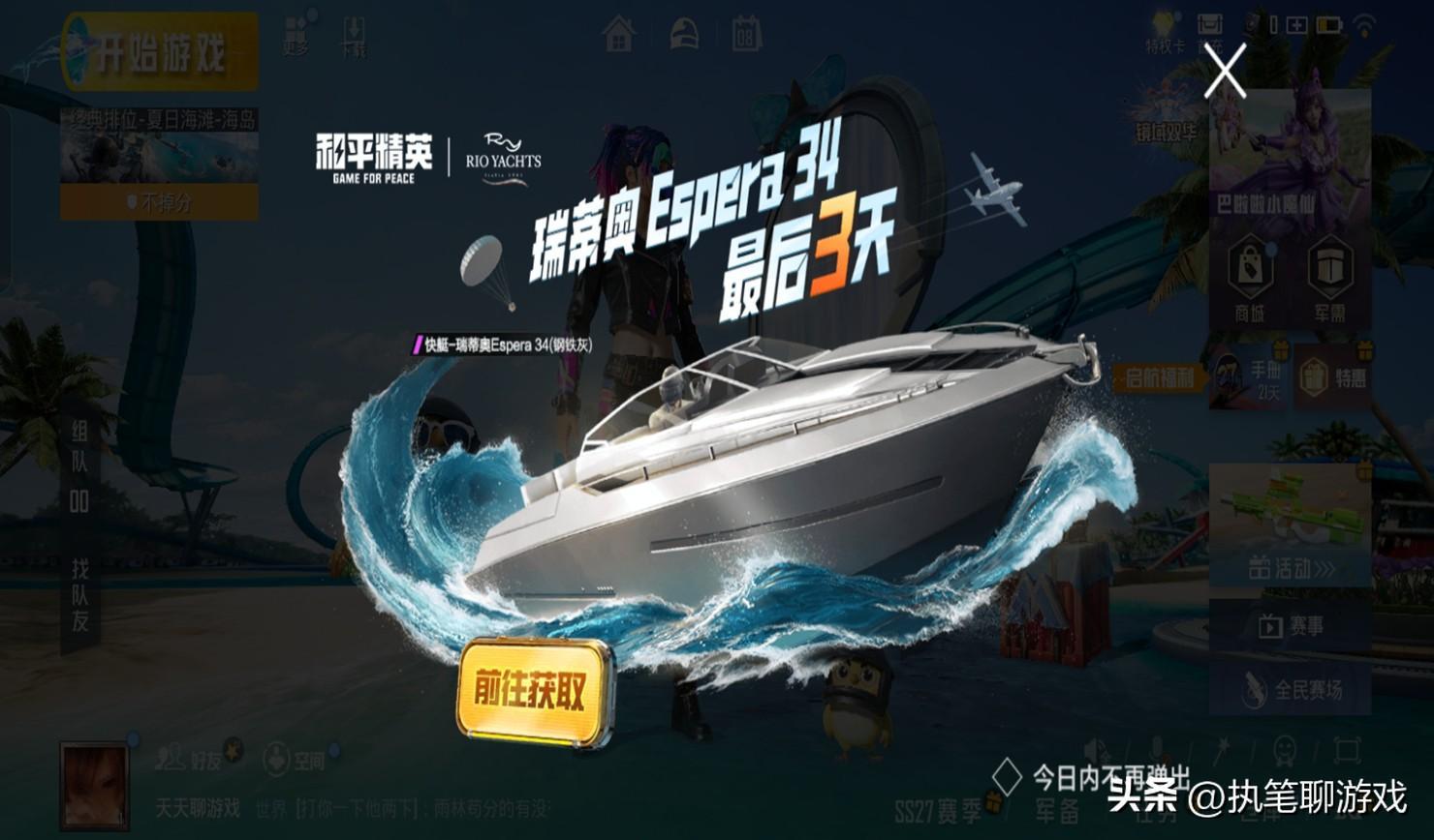 然後是第3個倒計時,它就是來自瑞迪奧的聯名載具皮膚,這個系列均爲“遊艇”,一共有4個顏色,分別是琉璃藍、閃光橙、鋼鐵灰、寶石藍。