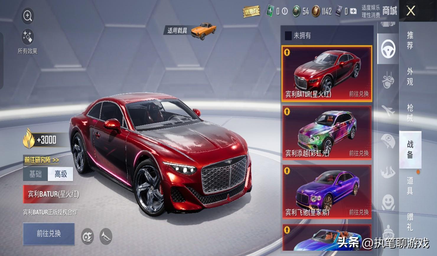 首先第1個倒計時,來自賓利系列,這個系列足足有8個載具皮膚,其中4個升級款、4個普通款。