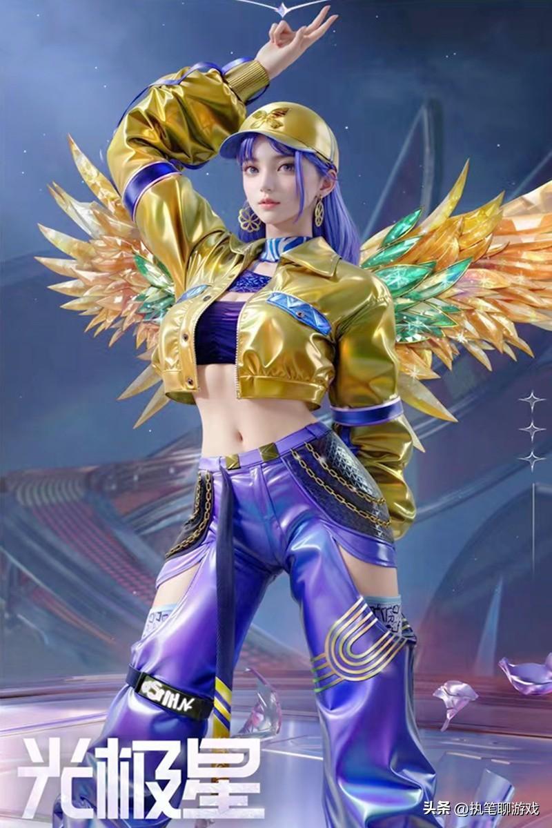 理性高冷的“電波星”,時有着智慧之光的少女,棱彩水晶一般的翅膀,搭配短款亮片上衣、黑色皮褲,可以說是走在潮流前線的美少女。