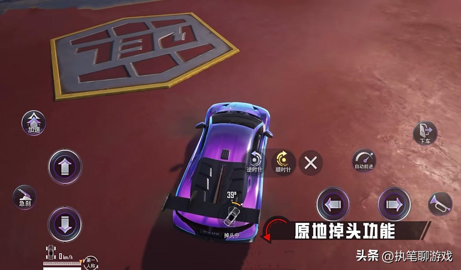 如圖所示,所謂的“原地掉頭”新功能,遊戲中新增了一個“原地掉頭”的按鈕,同時還可以通過新增按鈕“逆時針、順時針”來調整原地掉頭的方向。