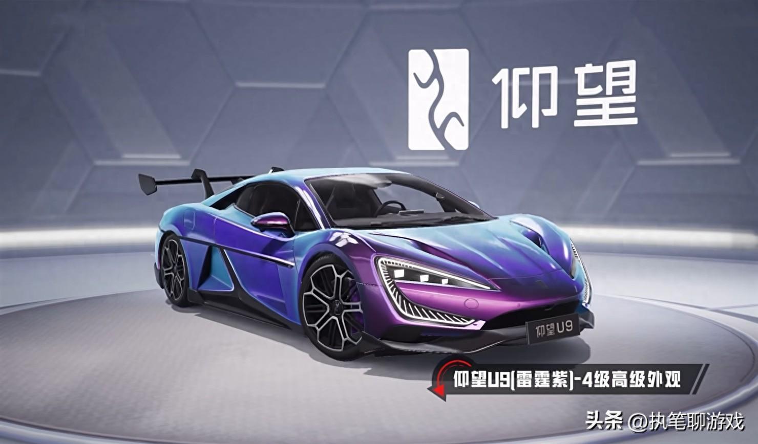我們首先要說的是U9的4級高級外觀,與1級基礎外觀相比,顏色發生了極大的變化,原本的紫色已經變成了“藍紫”,就連黑色頂棚也變成了同樣的顏色,不過尾翼、輪轂卻有什麼變化。
