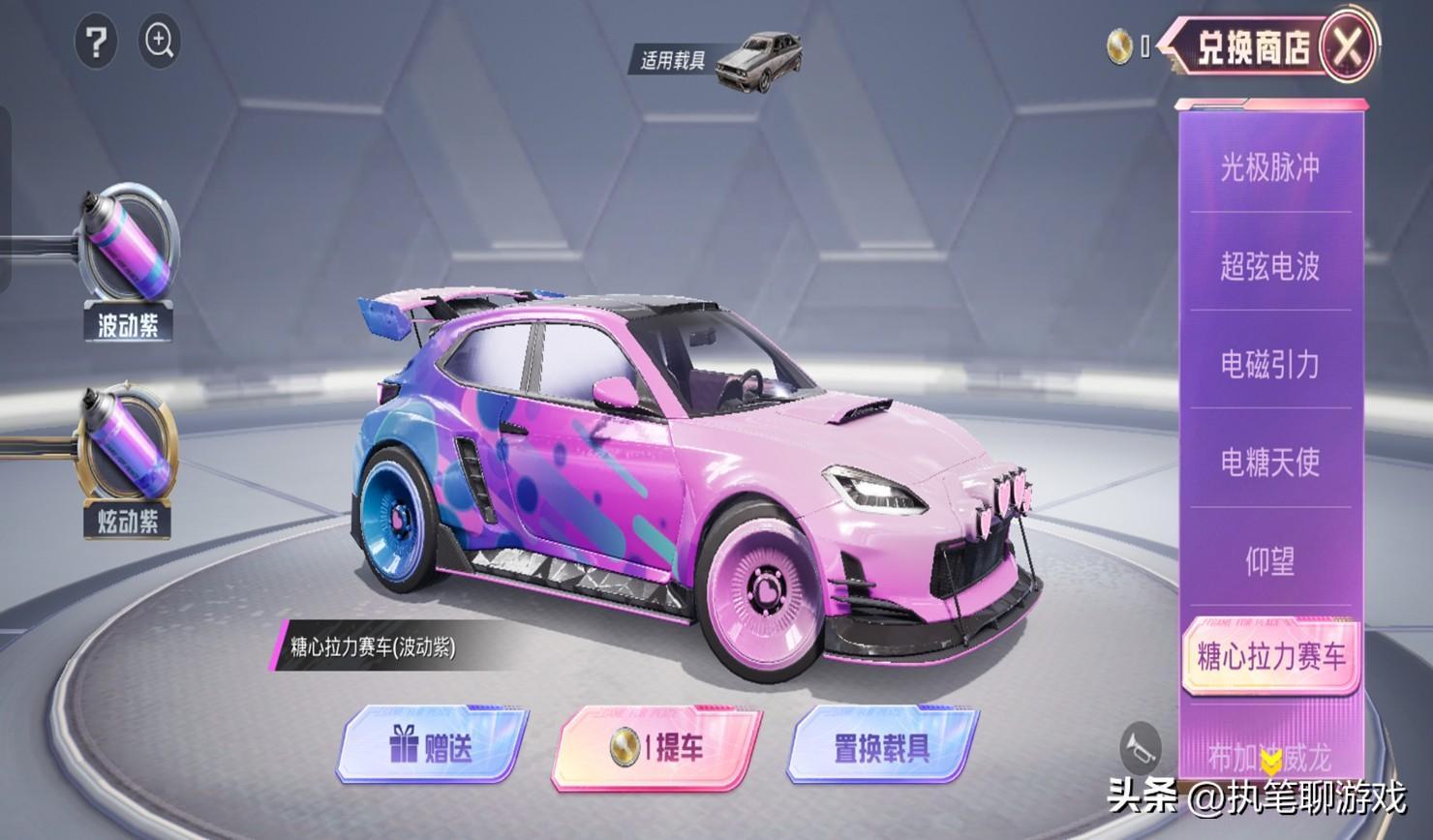 如果換成天哥自己的話,對於這兩個車皮的選擇,毫無疑問,必然會選擇1個幣的波動紫,雖然名字中有“紫”,但其實是以粉色爲主,粉色的跑車即便是沒有花裏胡哨的特效,也是相當好看。當然,最關鍵的是這些特效要多付出2個提車幣,這就不是最佳選擇了。